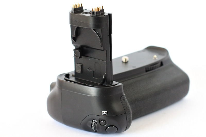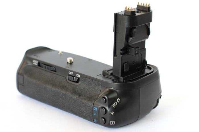 Meike Mk-70D, batterigrepp eller vertikalgrepp som passar till Canon EOS 70D och motsvarar Canon BG-E14. Under den analoga tiden kallades batterigreppet ofta för batteripack eller motor, då det innehöll motordrift till filmframmatningen.