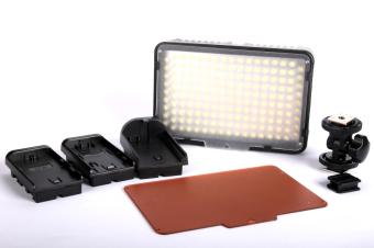 168st LED. Kan monteras i kamerans blixtsko och är utbyggbar både i sidled och i höjdled med hjälp av medföljande adapter. Drivs av ett kamerabatteri av typerna Canon LP-E6, Nikon EN-EL15, Sony NP-F550, NP-FM55H, NP-FH60 eller Panasonic D16, D54S , alternativt 6st AA-batterier. Indikator för batteristatus. Se teknisk information för jämförelse mellan Watt och lumen