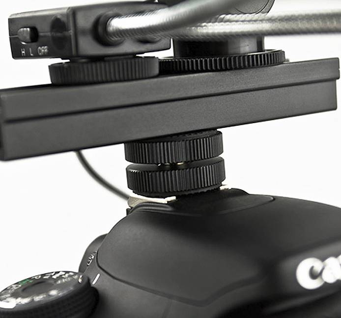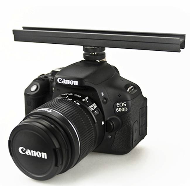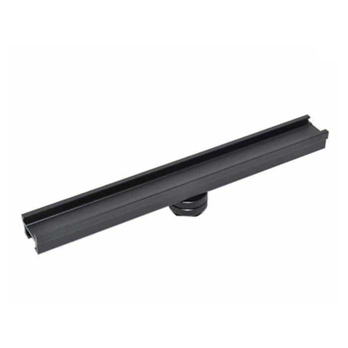 Tycker du ibland att du skulle vilja ha flera saker i blixtskon på kameran? T ex mikrofon och LED-ljus, fjärrkontroll eller liknande. Då har du lösningen här, med monteringsskenan som man sätter i kamerans blixtsko. Den har även invändig 1/4"-gänga för att sätta den på ett kamerastativ. Den kan då belastas med flera kamerablixtar eller liknande. Konstruktion med dubbla låsmuttrar gör att skenan är rörlig både i sidled och i rotation. Ställ in som du vill ha och dra åt låsmuttrarna.