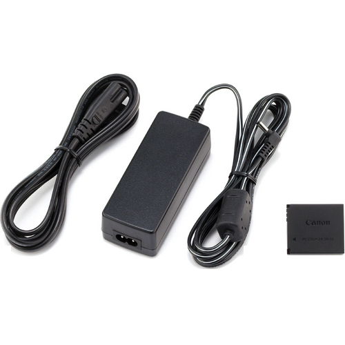 Strömadapter, originaltillbehör från Canon. När du använder kameran där du har tillgång till elnät kan du köra kameran direkt på nätspänning istället för att använda batterier.
